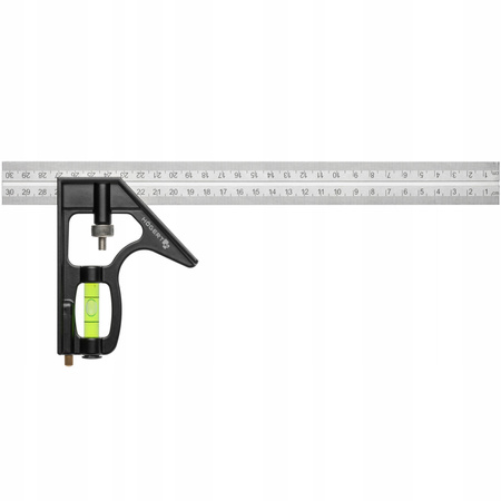 Precyzyjny kątownik z 300 mm hartowanym liniałem ze stali.