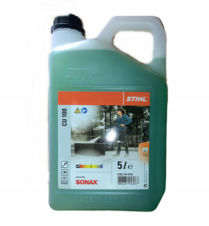 Uniwersalny środek czyszczący Stihl CU 100 został stworzony we współpracy z firmą SONAX, znanym producentem środków do czyszczenia. Środek czyszczący do myjek ciśnieniowych CU 100 jest używany do łagodnego czyszczenia różnych zabrudzeń z twardych powierzchni w domi i na terenach przydomowych. Doskonale sprawdza się do czyszczenia powierzchni lakierowanych, metalowych, z kamienia, tworzyw sztucznych i szkła .